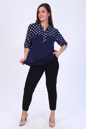 Туника прямого покроя подобрана на паты, рукав 3/4 на манжете. Передняя полочка на кокетке, комбинированная в двух цветах, спинка цветная. Удобна, практична.