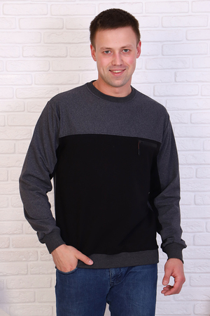 Модный и стильный джемпер выполнен в двух цветовых блоках, что сейчас очень актуально. Круглый ворот, низ и рукав на манжете, нагрудный карман на молнии. Простота и комфорт -.подойдет к джинсам, брюкам.