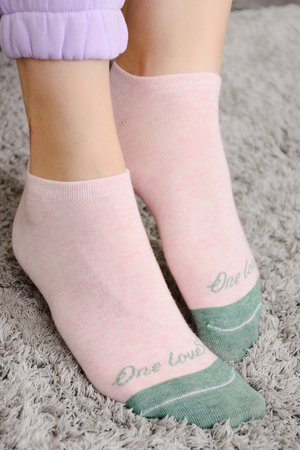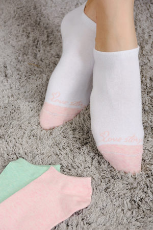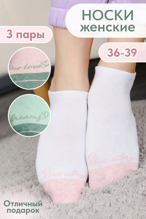 Набор женских носочков в нежнейших расцветках. Укороченные, над носочной частью вывязаны надписи. В упаковке 3 пары - по 1 паре каждой расцветки. Упаковка - пакет