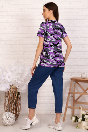 Модель выполнена из легкого и приятного к телу трикотажа. Короткий рукав, круглый вырез горловины и полуприлегающий силуэт обеспечат комфорт летним днём. Изделие дополнено печатью в цвет ткани. Футболка с оригинальным трендовым в этом сезоне принтом выглядит стильно и эффектно.