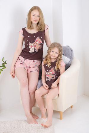 Озорная пижама с шортами чрезвычайно удобна. Ничто не стесняет движений. Выполнена исключительно из натурального хлопка. Шорты с боковыми карманами. Контрастная отстрочка. Family look.