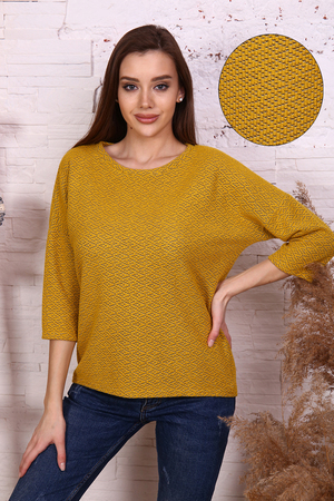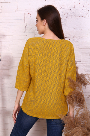 Джемпер из мягкого вязаного трикотажа, круглая горловина обработана обтачкой, спущенная пройма, рукав длиной 3/4. Спинка слегка удлинена и закруглена. Джемпер комфортный, универсальный, создаст неповторимый стиль для модницы любой фигуры.