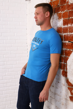 Футболка мужская с коротким рукавом и круглым воротом, плечевой шов усиленный. Изделие выполнено из плотной высококачественной кулирки. Модная, приятная к телу футболка с современным принтом подойдет на любой случай.