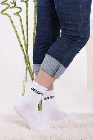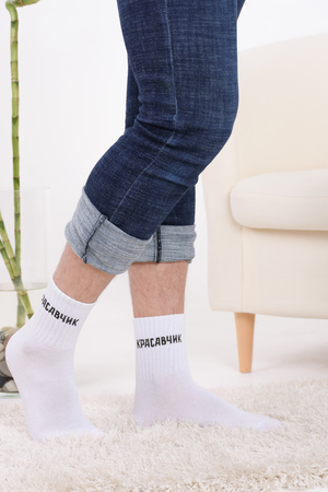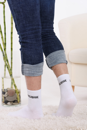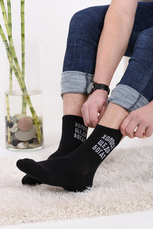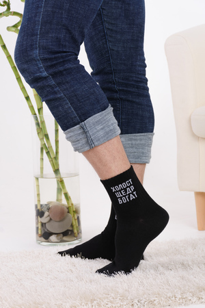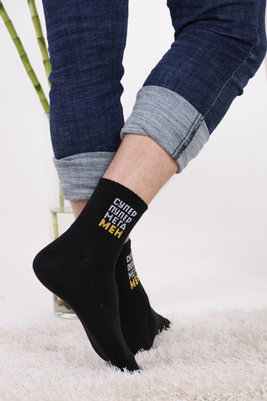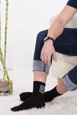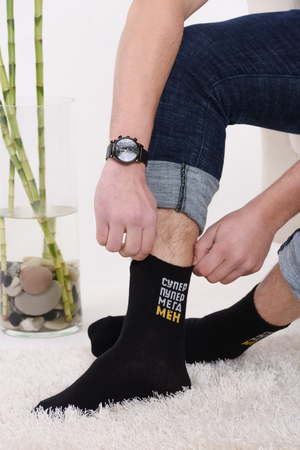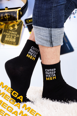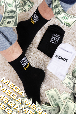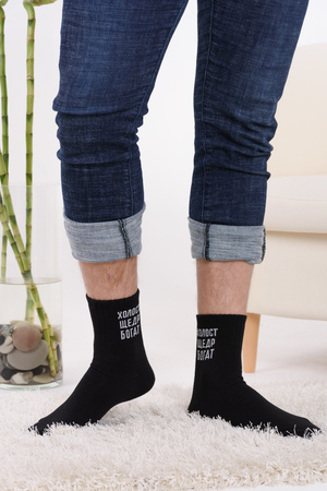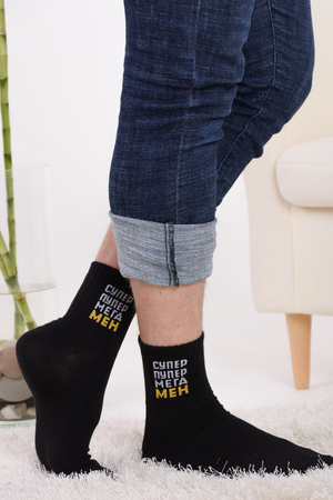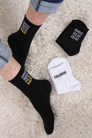 Набор мужских носков с оригинальными надписями. Высокий паголенок и широкая резинка. В упаковке 3 пары - по 1 паре каждого вида