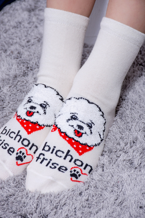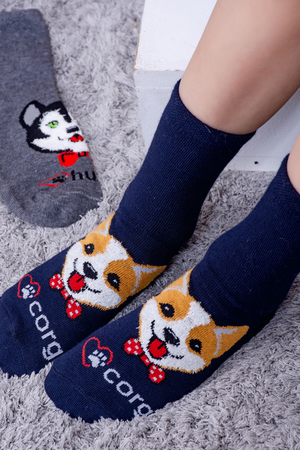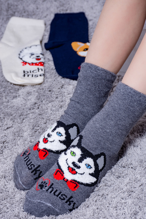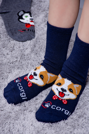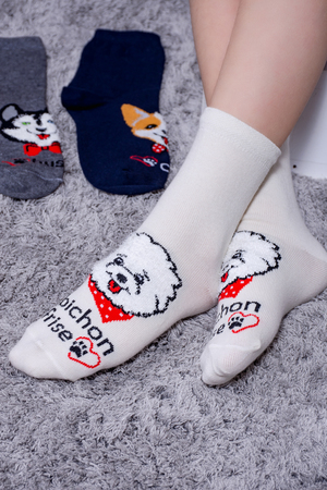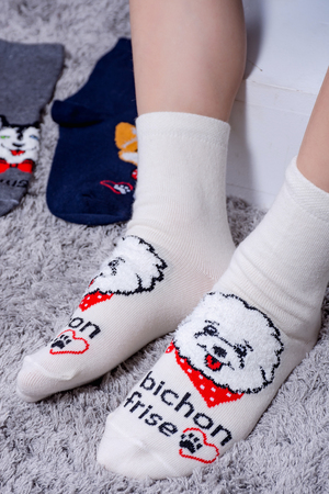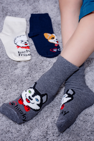 Набор детских носочков с очаровательными пушистыми мордочками собак. В упаковке 3 пары - по 1 паре каждого цвета
