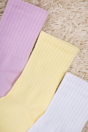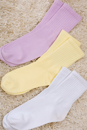 Набор женских носочков в приятных пастельных расцветках. Высокий паголенок, широкая резинка, прекрасно подходят для занятий спортом и повседневной носки. В упаковке 3 пары - по 1 паре каждой расцветки (белый, желтый, сиреневый)