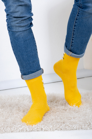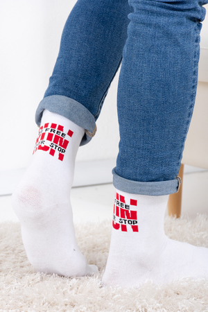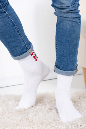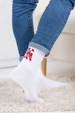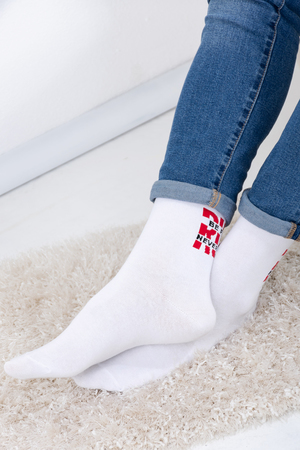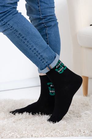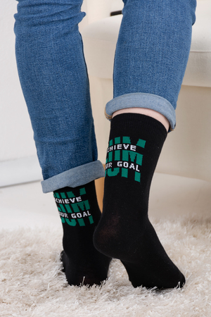 Набор мужских носков в спортивном стиле. Сзади над пяточной частью вывязаны надписи. В упаковке 3 пары в пакете - по 1 паре каждого цвета