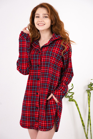 Туника выполнена из 100% хлопка. Такая мягкая и удобная, что её не захочется снимать. Изделие прямого силуэта, на пуговицах, отложной воротник. Рукава удлинённые, с широкими манжетами, выполненными "по косой". (Пожалуйста, обращайте внимание на фотографии деталей.) По низу изделия фигурный элегантный разрезик. Модная в этом сезоне клетка в сочетании с актуальными цветами не оставит Вас без внимания, а свободный крой позволит чувствовать себя уверенно. Модель универсальная, подходит как для сна, так и для комфортного времяпровождения дома. Длина рукава в характеристиках указана от точки основания шеи.