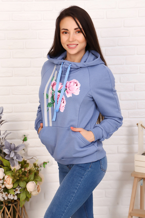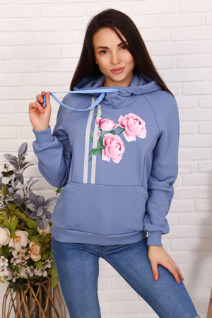 Толстовка из футера с капюшоном может расширить коллекцию Вашей одежды и подарить массу приятных ощущений. Свободный крой, сплошной карман-кенгуру спереди, рукав-реглан, эластичные манжеты на рукавах и подоле для комфортной посадки. Отлично комбинируется с джинсами, юбками и т.п.