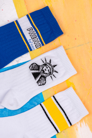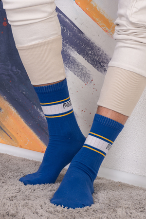 Набор мужских носков с оригинальными надписями. Высокий паголенок, по верху полосы в виде имитации резинки. В упаковке 3 пары - по 1 паре каждого вида
