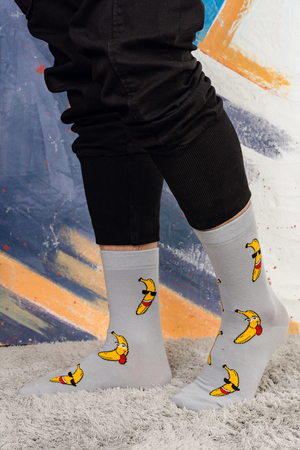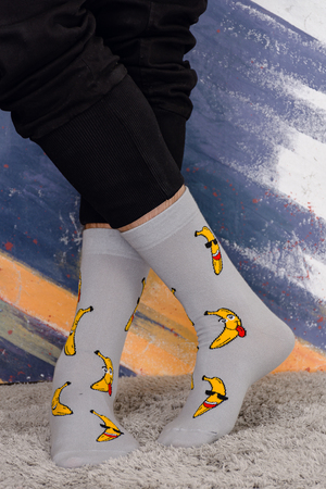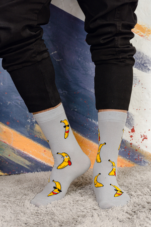 Яркие оригинальные носки с рисунками в виде бананов! Раскрасят серые будни и поднимут настроение всей семье. В продаже имеются одноименные женские и детские носки.