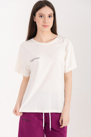 Стильная женская футболка с круглым вырезом горловины, спущенный рукав. С правой стороны на передней полочке небольшая печать.