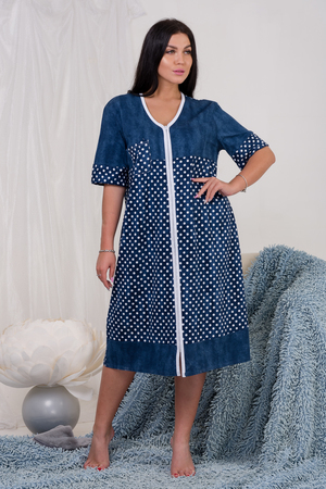 Уютный женский домашний халат. Модель выполнена из 100% хлопка, на молнии. Незаменимая вещь в женском гардеробе.