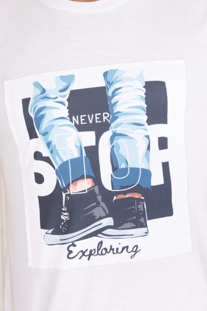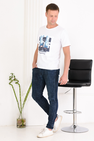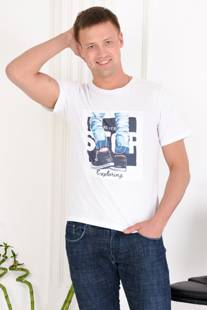 Стильная мужская футболка. Основная ткань изделия 100% хлопок. На передней полочке принтованная нашивка из ткани джерси (полиэстер), принт выполнен с использованием технологии сублимационной печати. Идеально подойдет для прогулок в теплую погоду.