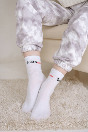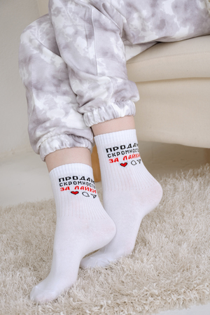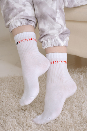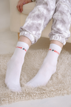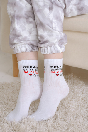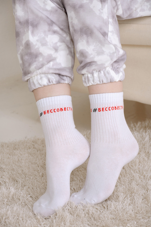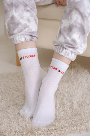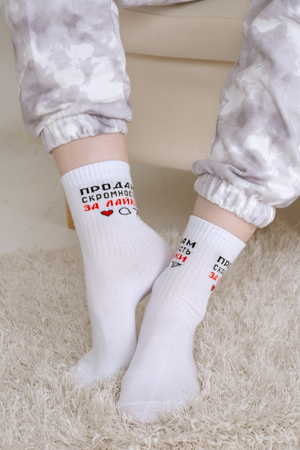 Набор однотонных женских носочков с оригинальными надписями. Высокий паголенок, широкая резинка, прекрасно подходят для занятий спортом и повседневной носки