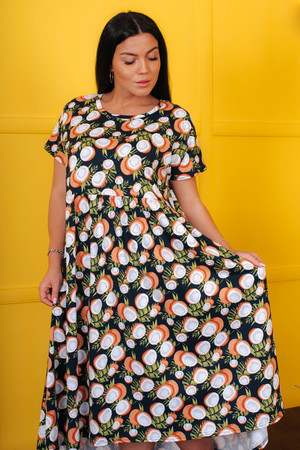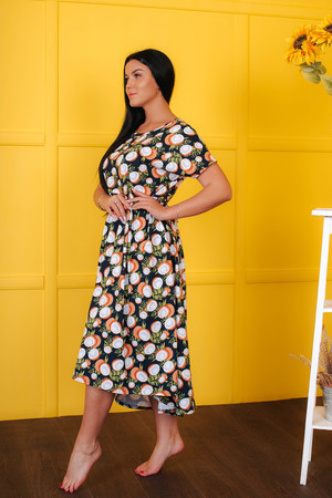 Платье женское свободного кроя, большие размеры, присборенная спинка, спинка длиннее полочки, рукава спущенные, длина платья ниже колена.