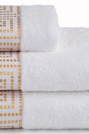 Полотенце Mito Greco – аллегория величия Древней Греции, искусство которой преодолело века и занимает сегодня лидирующие позиции в дизайне. Изделие декорировано современной интерпретацией узора меандр. Идею его великолепия поддерживает золотая полиэфирная нить. Такой дизайн полотенца способен связать воедино трендовые интерьеры ванных комнат и классический стиль. Цветовая палитра изделия актуальна и для мужчин, и для женщин.