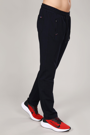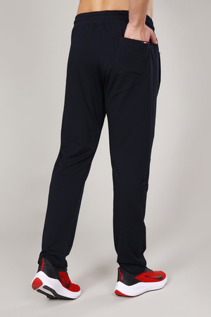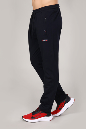 Брюки мужские классического кроя, карман-листочка с молнией. Пояс на резинке. С обеих сторон на карманах вышивка, так же сзади на правом кармане небольшая вышивка в виде логотипа.