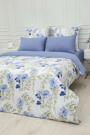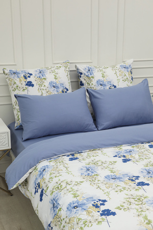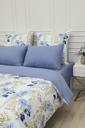 Постельное белье выполнено из сатина высокой плотности (пряжа 40х40) с пигментным окрашиванием. Ткань шелковистая, очень приятная на ощупь. Пододеяльник и наволочки сшиты из основной ткани, простынь и обратная сторона пододеяльника выполнены из ткани-компаньона.