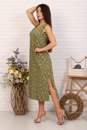 Сарафан с разрезом по левому боковому шву. Длина ниже колена.