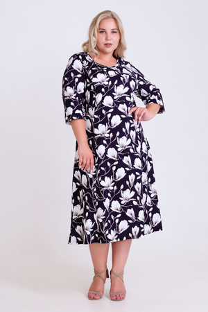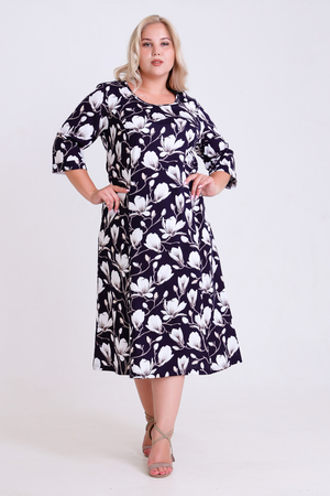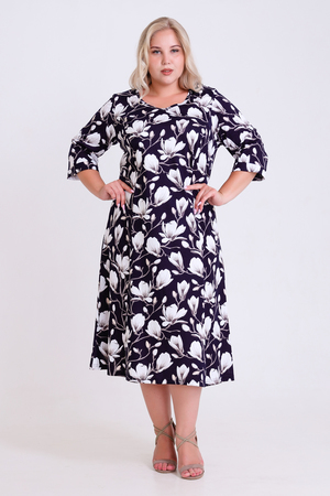 Длинное, расклешенное к низу платье из 100% хлопка. Слегка приталенное, благодаря рельефам спереди и сзади. Рукав 3/4 с манжетой, горловина обработана бейкой. Платье подчёркивает достоинства и скрывает недостатки фигуры женщины любого размера. Удобный свободный крой подарит Вам полную свободу движений и комфорт! Широкий размерный ряд.