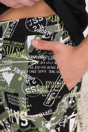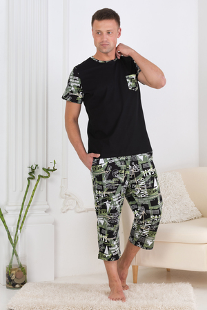 Мужской костюм. В комплекте футболка классического кроя с коротким рукавом и круглой горловиной. Яркие шорты с боковыми карманами, длина чуть ниже колена. Отличный и удобный вариант на каждый день.