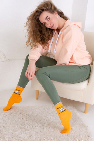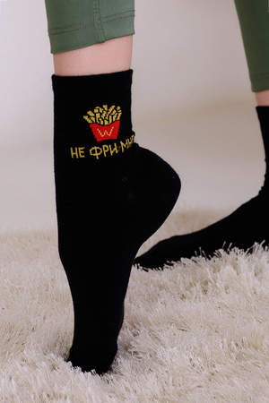 Набор однотонных женских носочков с оригинальными надписями. Высокий паголенок, по верху - резинка, прекрасно подходят для занятий спортом и повседневной носки