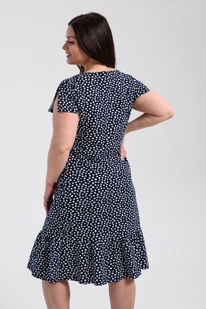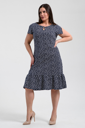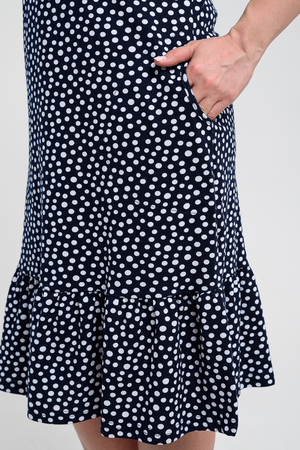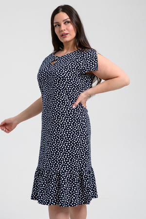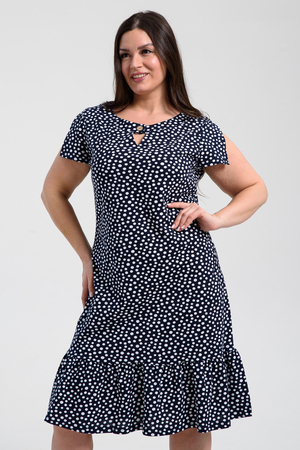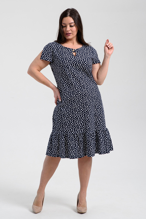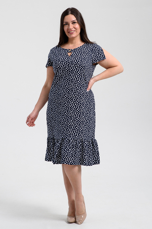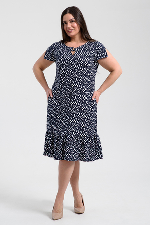 Платье женское полуприлегающего силуэта. По горловине декоративная пуговица. В боковых швах – карманы.