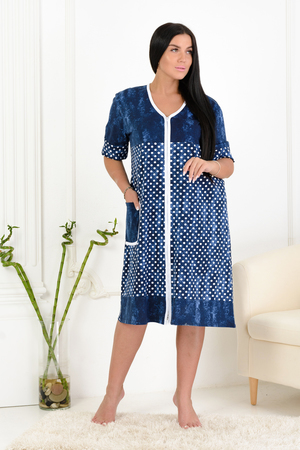 Уютный женский домашний халат. Модель выполнена из 100% хлопка, на молнии. Незаменимая вещь в женском гардеробе.