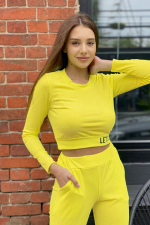 Футболка облегающая, с округлой горловиной, длиной выше талии. Рукав втачной, длинный. Горловина обработана обтачкой из основного полотна.