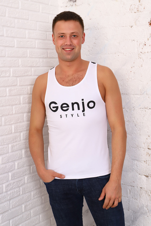 Мужская майка из кулирки пенье, на спинке вставка с печатью. Майка слегка приталена, что позволяет подчеркнуть мужскую фигуру. Ткань мягкая и эластичная, приятная к телу.