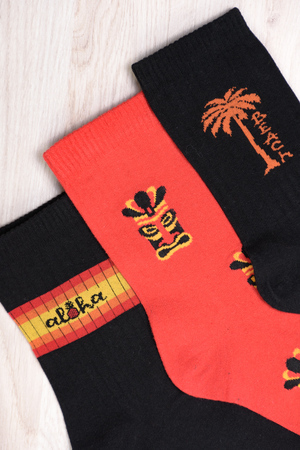 Набор ярких мужских носков с рисунками в этническом стиле. В упаковке 3 пары - по 1 паре каждой расцветки