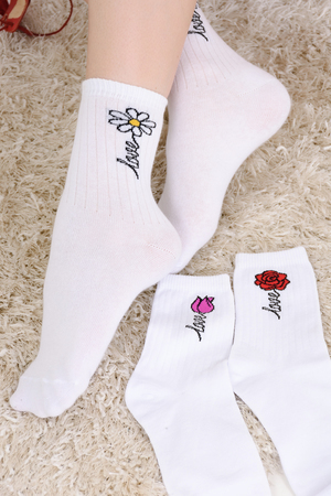 Набор женских носков с рисунками в виде цветов. Средняя высота паголенка, по верху широкая резинка. Отличный комплект для лета на каждый день