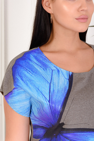 Туника выполнена из легкой мягкой ткани, имеет слегка расклешенный силуэт. Яркий принт туники позволит выглядеть нарядно как дома, так и на улице.
