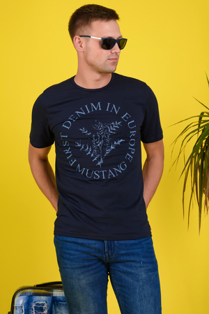 Мужская футболка на основе удобных лекал с использованием 100% хлопка. Лаконичный принт в близкой к крою гамме смотрится органично и достойно. Горловина обработана кантом, рукава и низ в подгибку.