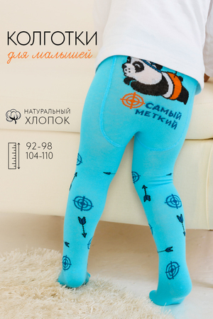 Детские колготки для мальчиков. По всей поверхности колготок вывязаны рисунки в виде стрел и мишеней, сзади - панда и надпись "Самый меткий"