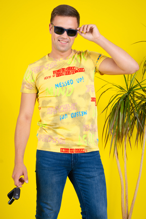 Классическая мужская футболка с коротким рукавом гармонично сочетается с джинсами, брюками, шортами. Полотно хорошего качества, не скатывается, не садится, не линяет.