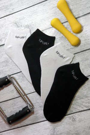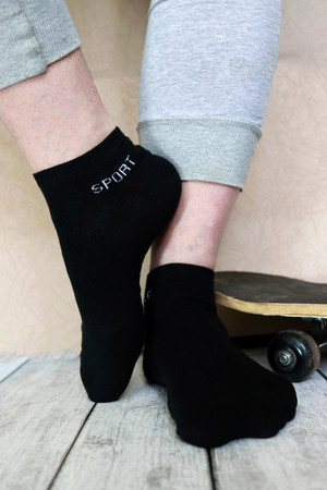 Набор спортивных укороченных мужских носков. В комплекте 6 пар. Белая и черная, по верху поголенка надпись SPORT. В продаже имеются аналогичные женские носки Эстафета