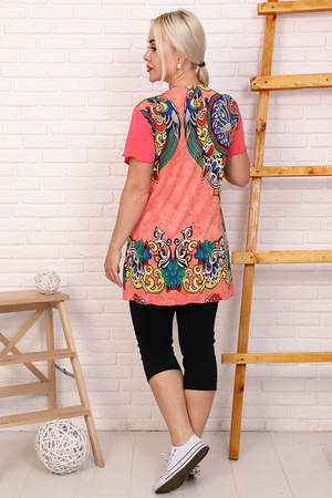 Летняя туника из масла. Короткие рукава, свободный покрой, декорированная горловина.