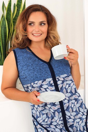 Уютный домашний халат. Модель выполнена из 100% хлопка, на молнии, с двумя карманами по бокам. Незаменимая вещь в женском гардеробе.