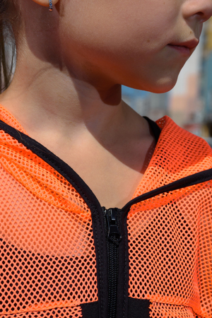 Толстовка прямая, свободная, с капюшоном из сетки, на молнии. Рукав длинный, из сетки, на эластичном манжете. Спинка удлиненная, из сетки. В верхней части полочки расположены кокетки из сетки. На полочку настрочены накладные карманы с клапанами из сетки.