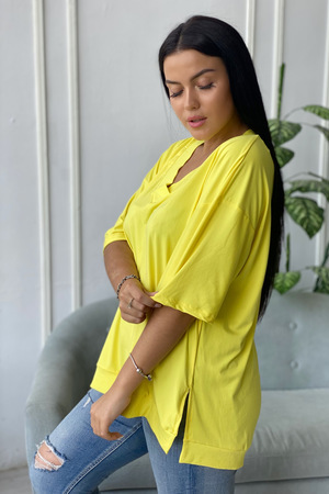Туника женская прямого силуэта, оверсайз. Вырез Y-образный. Рукав рубашечного покроя. В боковых швах разрезы.