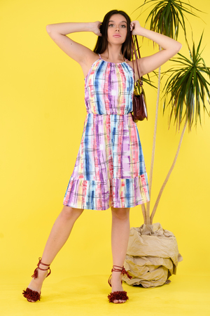 Легкий сарафан отлично подойдет для жарких летних дней. Яркая расцветка. Талия собрана на резинку. Длина бретелей регулируется.