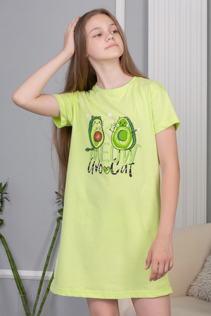 Ночная сорочка для подростков, из 100% хлопка, с модным принтом " Авокэт". Можно использовать как домашнюю тунику. Свободный крой со спущенной линией плеча. На фото представлена модель рост 158 см, 38 размер.