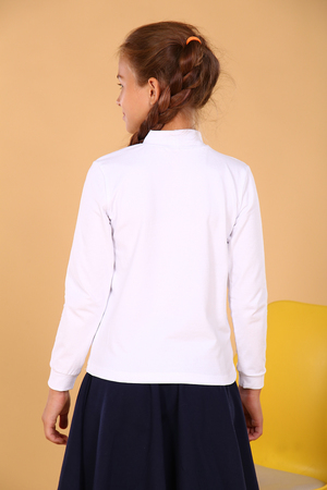 Школьная водолазка из высококачественного трикотажного полотна на хлопковой основе с добавлением эластана. Длинный рукав. Нарядность и романтичность изделию придает принт в виде цветов. Прекрасно будет смотреться в качестве школьной формы, как альтернатива классической блузке. Удобна в качестве повседневной одежды. Хорошо сохраняет цвет и форму при активной носке и после многократных стирок при 30 градусах. Синяя юбка на фото артикул 11594.