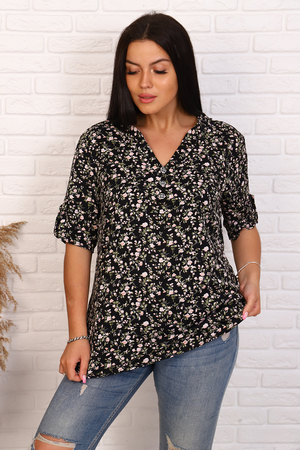 Туника женская прямого покроя, подобрана на паты, рукав короткий подобран на паты, воротник-стойка. Удобная практичная вещь
