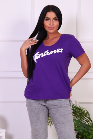Яркая женская футболка из 100% хлопка с коротким рукавом и принтом в виде надписи.