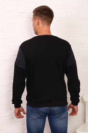 Джемпер из петельчатого футера. Приятная на ощупь ткань не потеряет свой первоначальный вид после множества стирок. Свободный силуэт обеспечивает комфортную посадку на любую фигуру. Базовая универсальная модель прекрасно сочетается с джинсами и брюками. Сочетание двух тканей - стильный акцент, подчеркивающий индивидуальность. Параметры модели на фото (ОГ-ОТ-ОБ):103-89-106; рост 180 см, размер 52