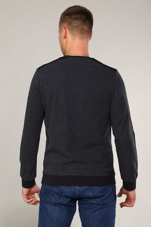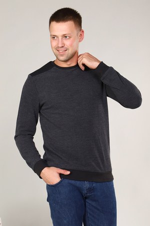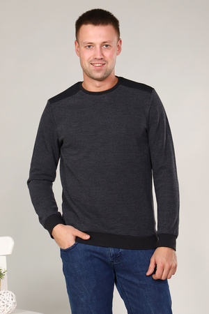 Мужской джемпер из качественной турецкой ткани. Пояс и рукава на манжетах. Вставка темно-синяя на плечах из трикотажа