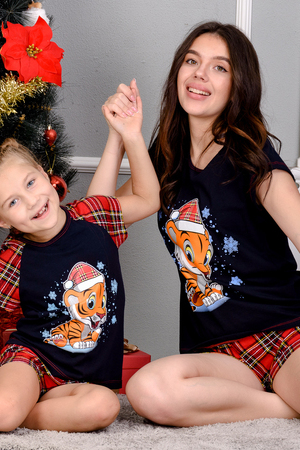 А не устроить ли на Новый год пижамную вечеринку? Или рождественскую фотосессию в ярких уютных пижамах? Отличная идея! И кстати, отличный подарок! Милейшая пижама с шортами с символом наступающего Нового года.